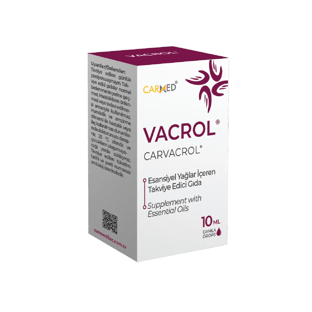 Bilgi : Vacrol Damla, ileri teknoloji kullanarak koruyucu ve katkı maddesi bulundurmadan iyi üretim koşulları (GMP) altında ve European Medicine Agency (EMA) prosedürlerine uygun 22 farklı tıbbi aromatik yağdan elde edilen 49 farklı aktif bileşenden oluşan dünyada ilk ve tek standardize üründür.